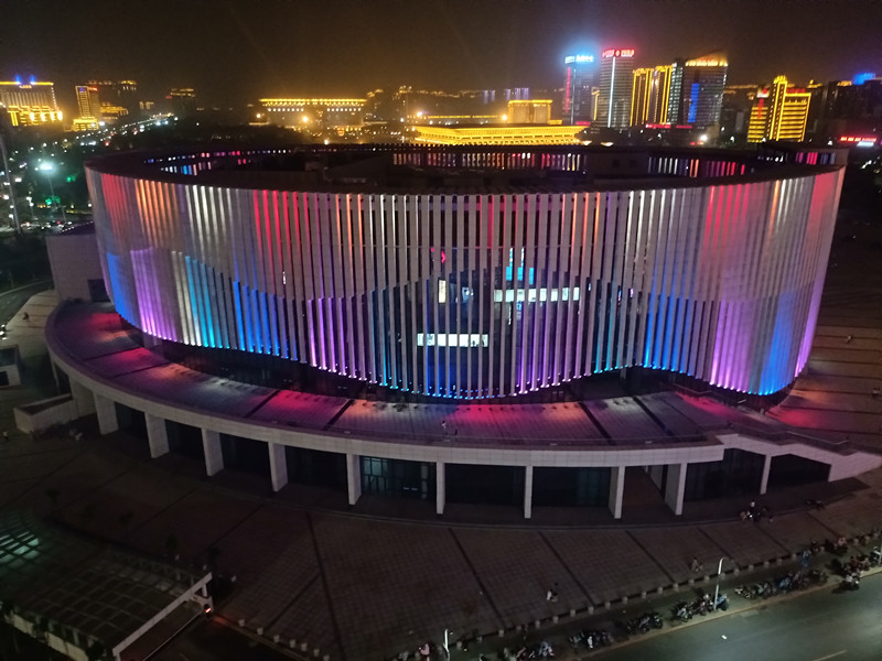 由于建筑本身的特點(diǎn),全部選取RGB投光燈打亮建筑營(yíng)造夜景氣氛,共計(jì)1230套投光燈,DMX512控制系統(tǒng),實(shí)現(xiàn)整體聯(lián)動(dòng)變化效果,完美的詮釋了建筑本身的美。